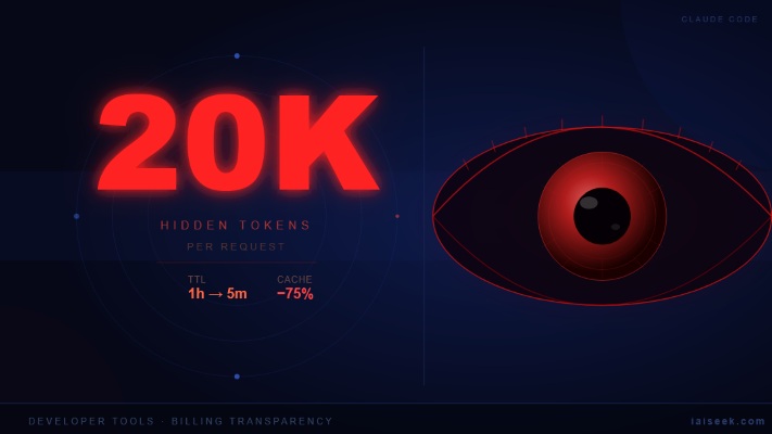 The compounding math isn't complicated: if hidden token overhead is fixed at ~20,000 per request, and cache hit rate drops from 70% to 20% due to the shorter TTL, actual token consumption more than doubles — with zero change to what the user typed.