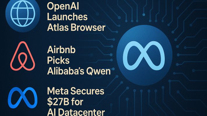 Nas últimas 24 horas, o cenário de IA acelerou novamente: a OpenAI entrou no mercado de navegadores, o Airbnb declarou preferência pelo Qwen da Alibaba e a Meta fechou um financiamento privado recorde para construir sua maior infraestrutura de IA.